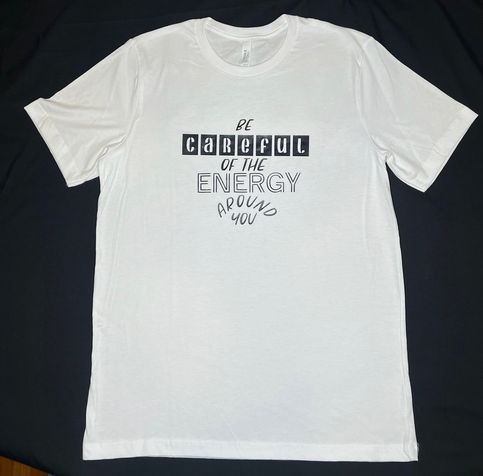 The "Be Careful of the Energy Around You" tee is more than fabric and print—it's a shield against negativity and a conduit for positive intentions. As you wear this tee, you radiate a signal that you prioritize positivity and actively curate the energy you allow into your life.